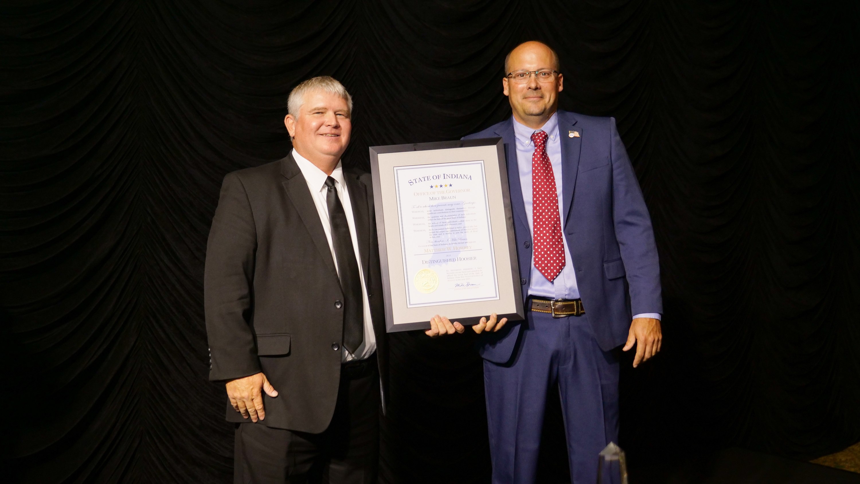 North Salem, Indiana – September 16, 2025 – Matthew W. Howrey, president and CEO of The North Salem State Bank (NSSB) and its holding company, North Salem State Bancorporation, has been recognized with the Distinguished Hoosier Award by Governor Mike Braun. The honor was presented to Howrey, chairman of the Indiana Bankers Association, on Sunday, September 7th, during the Chairman’s Banquet at the Indiana Bankers Association’s Annual Convention in French Lick. The award was presented by Tom Fite, director of the Indiana Department of Financial Institutions and is among the highest distinctions given by the State of Indiana. Granted at the discretion of the governor, the award recognizes individuals whose achievements and service have made a lasting impact on their communities.